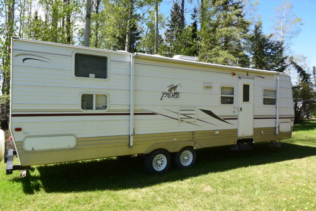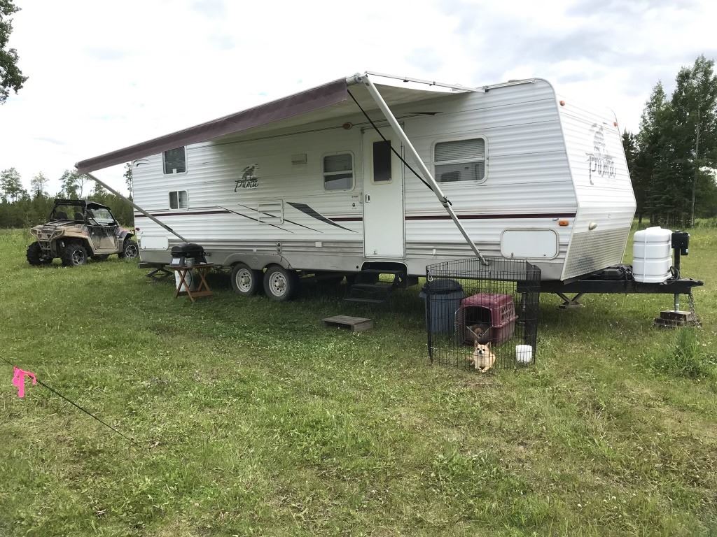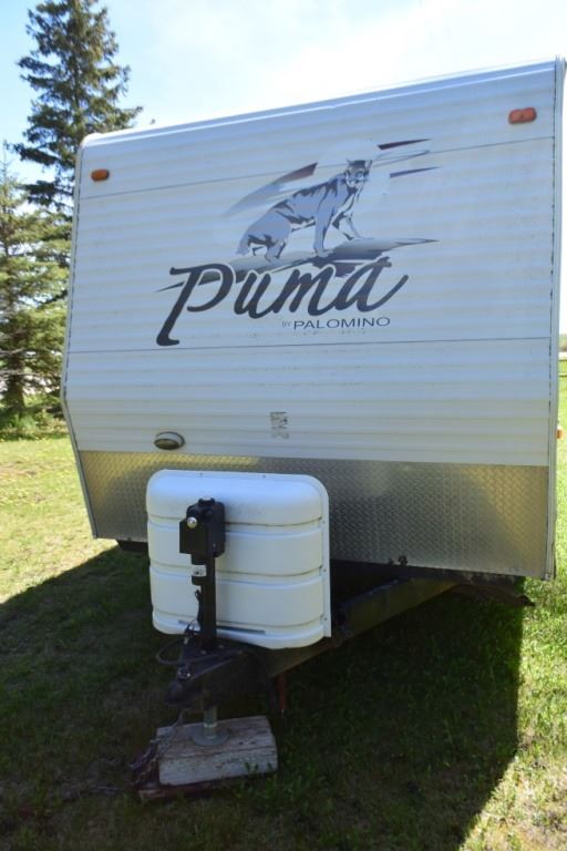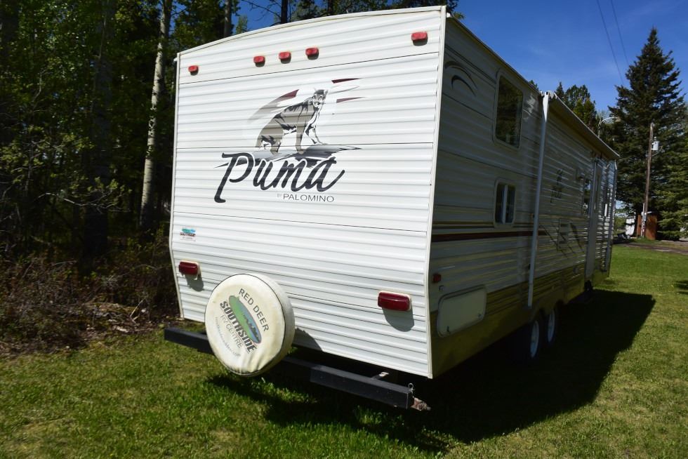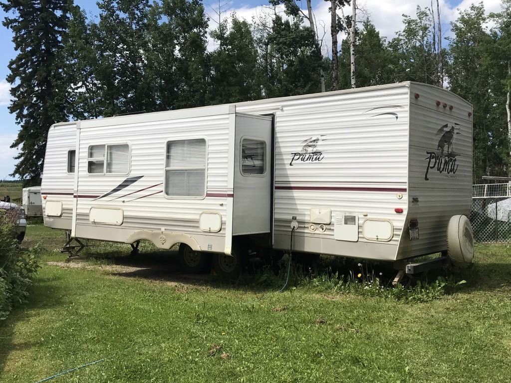 2006 Puma 30' full slide with rear bunk room. This pull trailer has amazing outside (arrows on floor plan) and inside storage. Best part is the separate front and back bunk bedrooms with doors that help seperate the