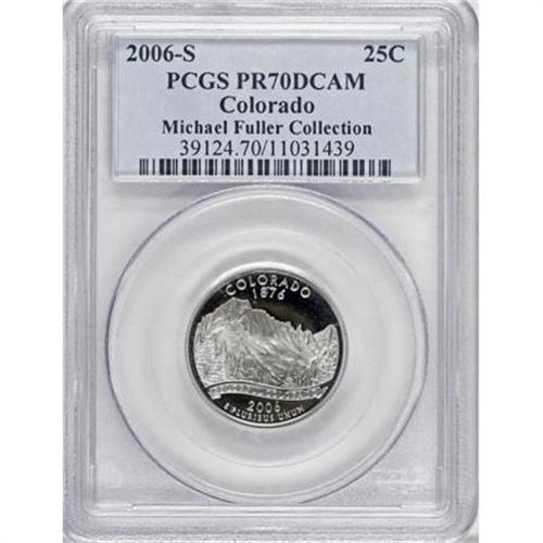 <B>2006-S 25C Colorado Clad PR70 Deep Cameo PCGS.</B></I> Michael Fuller Collection. PCGS Population (75/0). NGC Census: (0/0). Numismedia Wsl. Price for NGC/PCGS coin in PR70: $36. (#39124)<BR><BR><b>Shipping:</b> Coins & Currency (<a target="_blank" href="http://www.heritageauctions.com/common/shipping.php">view shipping information</a>)