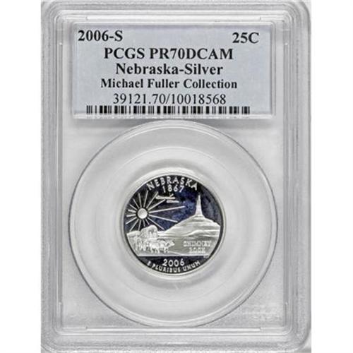 <B>2006-S 25C Nebraska Silver PR70 Deep Cameo PCGS.</B></I> Michael Fuller Collection. PCGS Population (114/0). NGC Census: (0/0). Numismedia Wsl. Price for NGC/PCGS coin in PR70: $40. (#39121)<BR><BR><b>Shipping:</b> Coins & Currency (<a target="_blank" href="http://www.heritageauctions.com/common/shipping.php">view shipping information</a>)