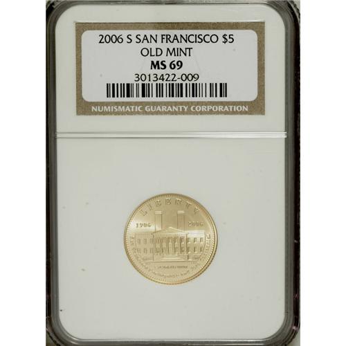 2006-S $5 Old San Francisco Mint MS69 NGC. NGC Cen