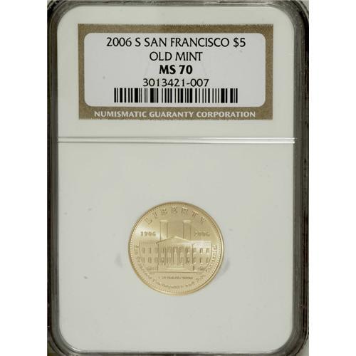 2006-S $5 Old San Francisco Mint MS70 NGC. NGC Cen