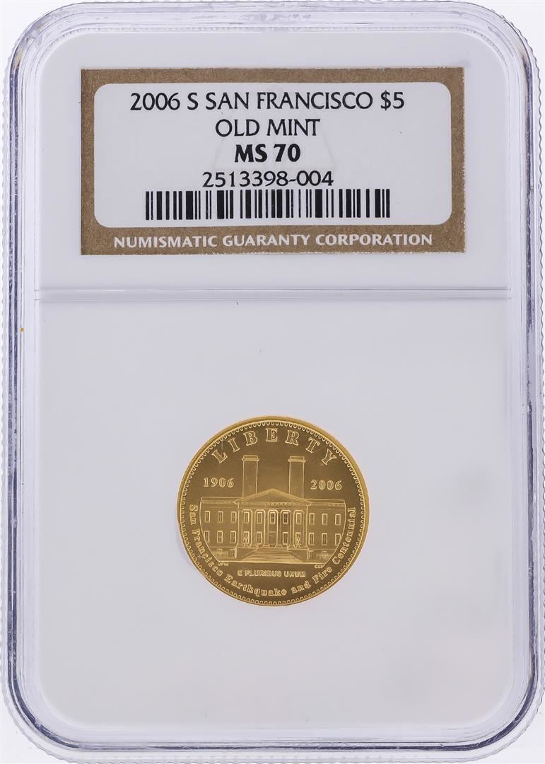 One 2006-S $5 San Francisco Old Mint Gold Coin NGC MS70. NGC Certified.