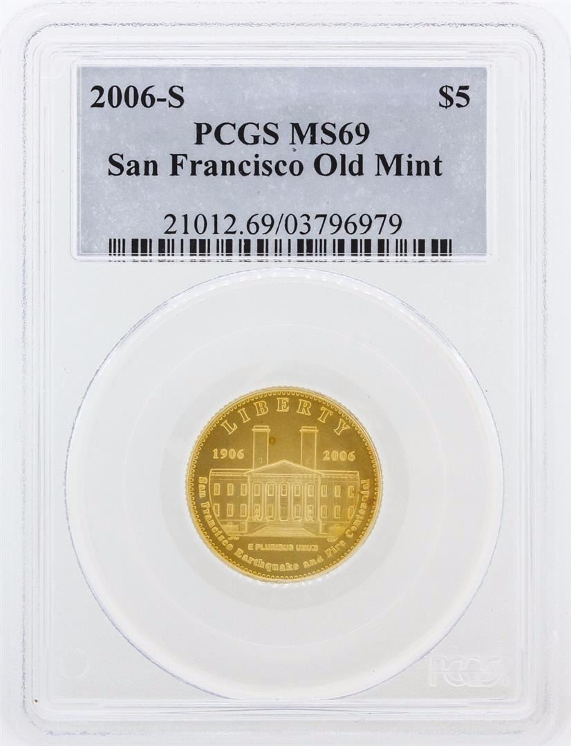 One 2006-S PCGS MS69 $5 San Francisco Old Mint Gold Coin. PCGS Certified.