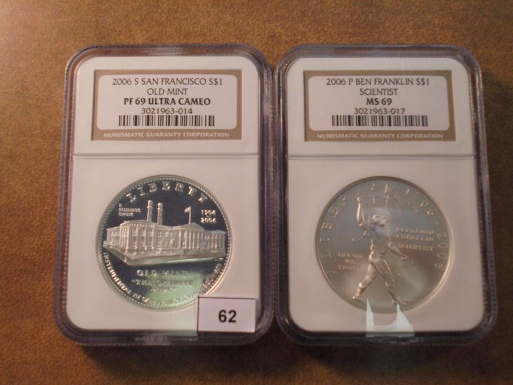 PF69 ULTRA CAMEO AND 2006-P BEN FRANKLIN "SCIENTIST" SILVER DOLLAR NGC MS69
