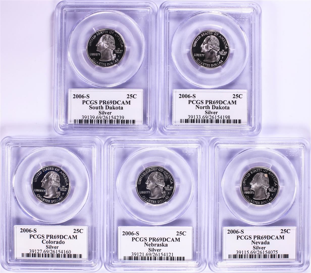 One 2006-S Silver Proof State Quarter (5) Coin Set PCGS PR69DCAM. PCGS Graded.