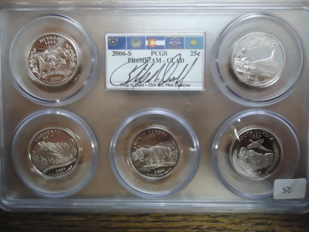 MULTI COIN HOLDER PR69 DCAM AND AUTOGRAPHED BY PHILIP N. DIEHL "US MINT DIRECTOR"