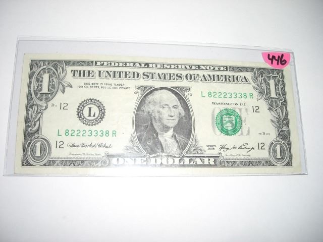 2006 SERIES RARE *3/3/2 SERIAL DIGITS* $1.00 SERIAL # *L82223338. NICE US DOLLAR*!! DOLLAR CAME OUT OF SAFE!! ***Coin, Currency & All Items Listed in this auction - Grades, Conditions and Values are not Safe Deposit Coins LLC Responsibilty. Grades, Condition and Values are determined by Consigner(s) & Buyers ONLY