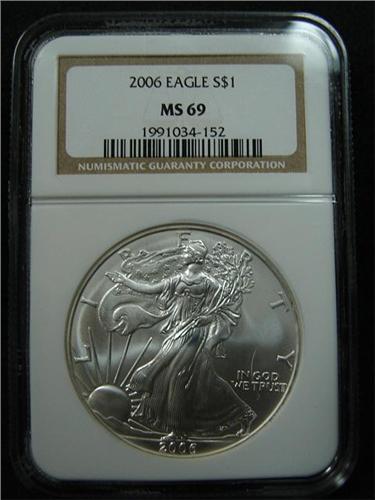 2006 AMERICAN EAGLE SILVER DOLLAR. Graded by NGC. MS 69.