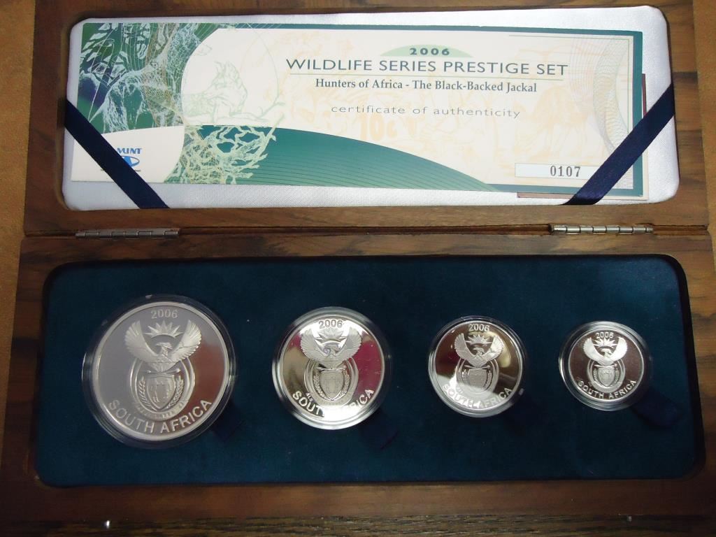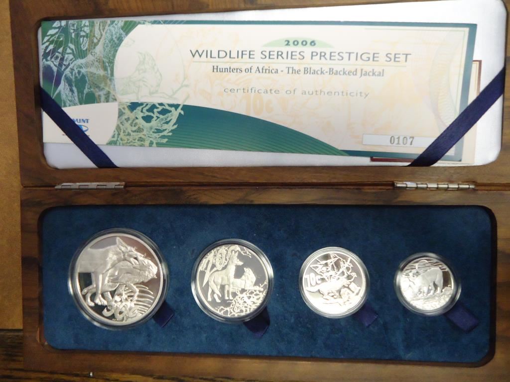 4 COINS, 1/4, 1/2, 1 & 2 OUNCE STERLING SILVER IN NICE WOODEN DISPLAY BOX. #107