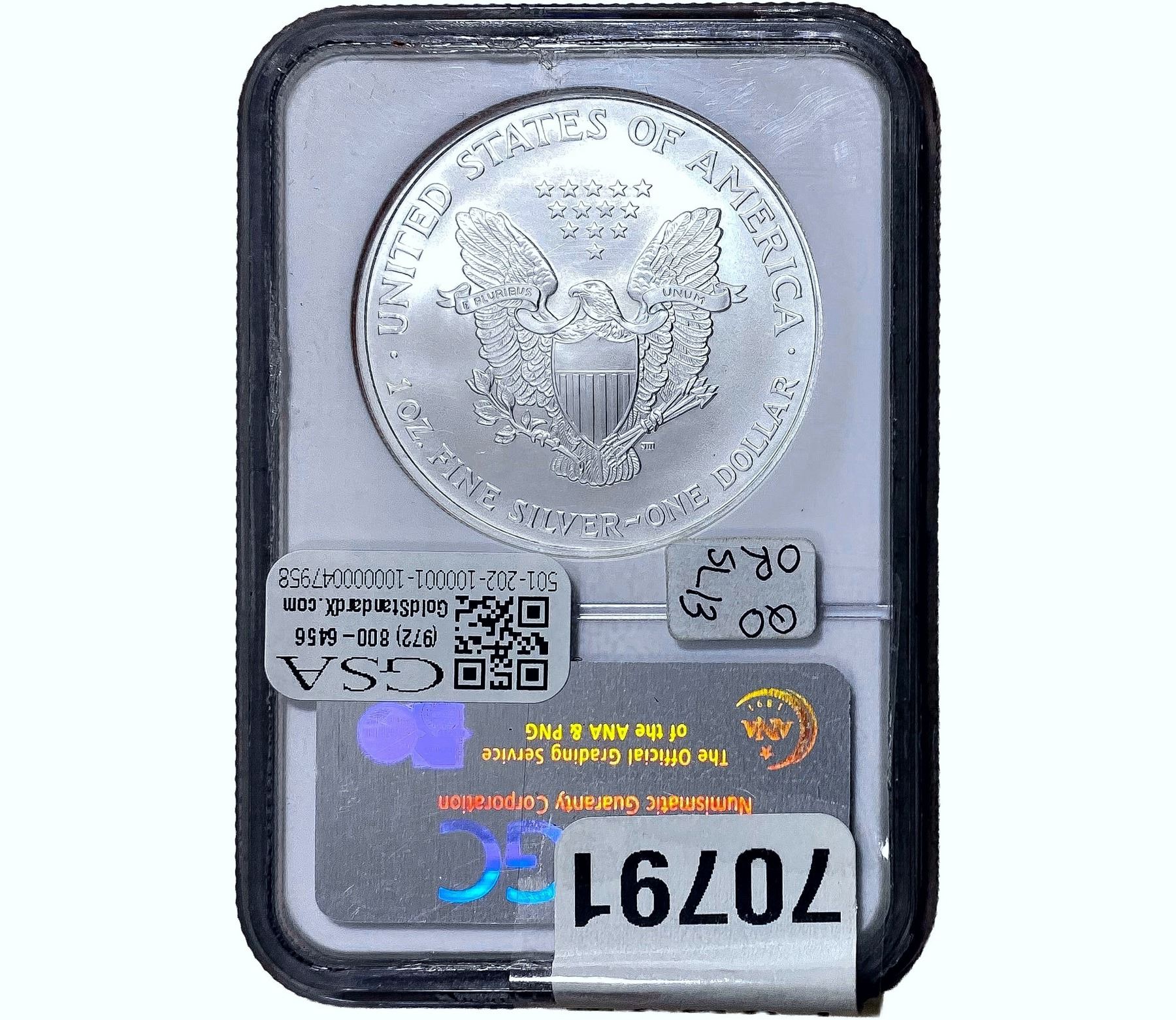 e. Coins sold referencing a third-party grading service are sold “AS IS” without any express or implied warranty, except for a guarantee by GSA that they are genuine. Removal or alteration of the holder, voids all of Bidder’s claims concerning that Product. Certain warranties may be available from the grading services and Bidders are referred to them for further details: Numismatic Guaranty Corporation (NGC), PO Box 4776, Sarasota, FL 34230, www.ngccoin.com/services/writtenguarantee.asp; Professional Coin Grading Services (PCGS), PO Box 9458, Newport Beach, CA 92658, www.pcgs.com/guarantee.html; ANACS, 6555 S. Kenton St., Ste. 303, Englewood, CO 80111; and Independent Coin Grading Co. (ICG), 7901 East Bellview, Ave., Suite 50, Englewood, CO 80111.