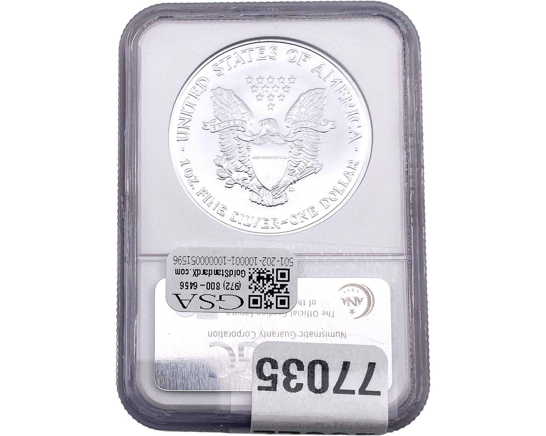 e. Coins sold referencing a third-party grading service are sold “AS IS” without any express or implied warranty, except for a guarantee by GSA that they are genuine. Removal or alteration of the holder, voids all of Bidder’s claims concerning that Product. Certain warranties may be available from the grading services and Bidders are referred to them for further details: Numismatic Guaranty Corporation (NGC), PO Box 4776, Sarasota, FL 34230, www.ngccoin.com/services/writtenguarantee.asp; Professional Coin Grading Services (PCGS), PO Box 9458, Newport Beach, CA 92658, www.pcgs.com/guarantee.html; ANACS, 6555 S. Kenton St., Ste. 303, Englewood, CO 80111; and Independent Coin Grading Co. (ICG), 7901 East Bellview, Ave., Suite 50, Englewood, CO 80111.
