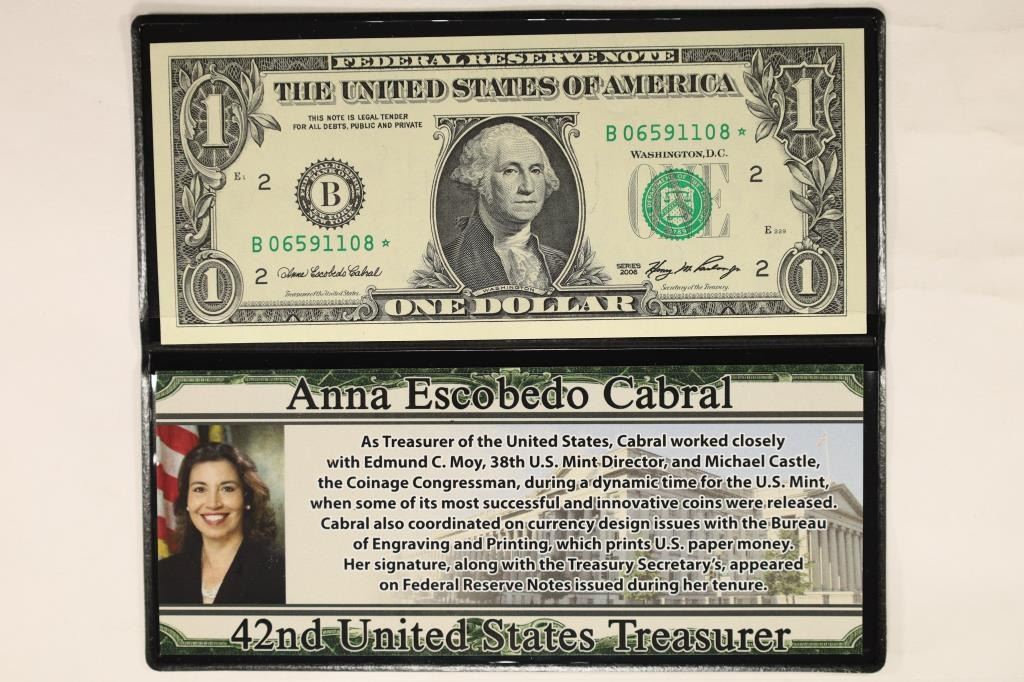 CABRAL SIGNATURE AS THE 42ND US TREASURER CRISP UNC IN BLACK FOLIO