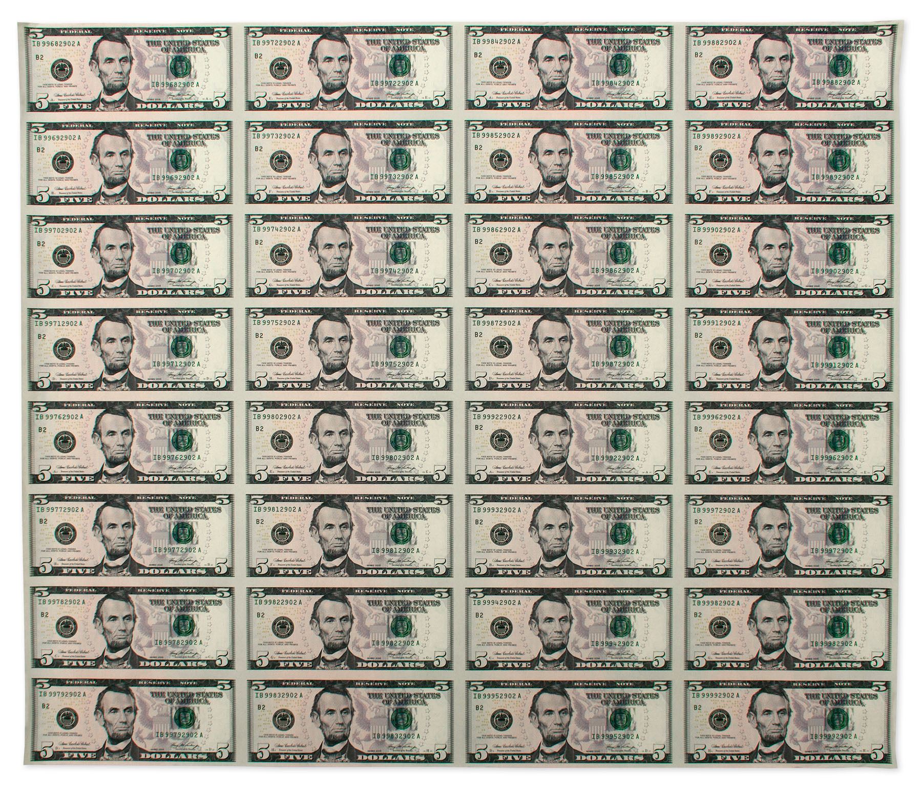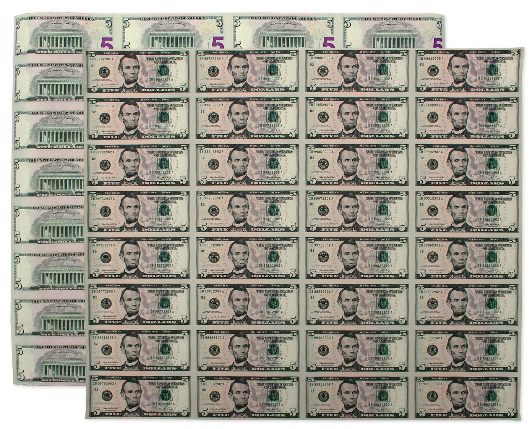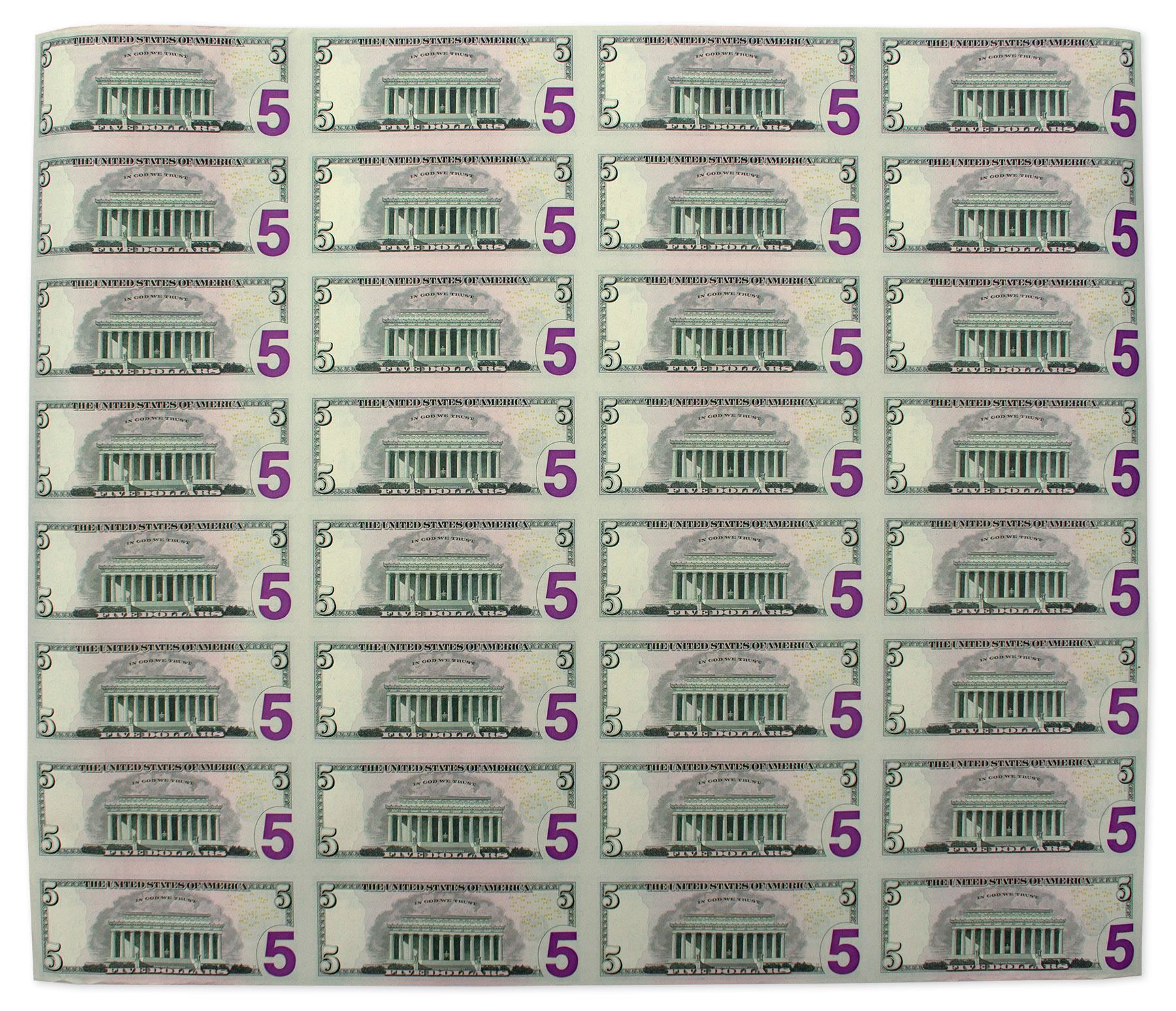 2006 Uncut Sheet of 32 $5 Federal Reserve Notes -- Near Fine -- With Original Tube From Bureau of Engraving & Printing