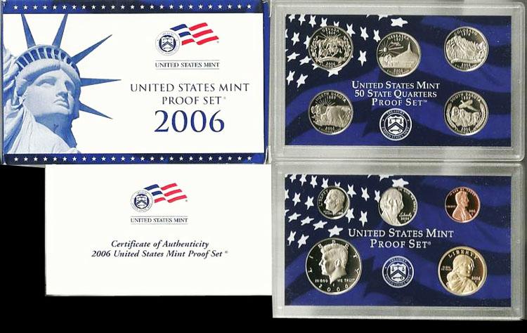 The Set contains 5 Proof State Quarters, a Proof Half Dollar, a Proof Dime, as well as 3 additional Proof coins Including the Sacagawea Proof Dollar coin. Complete with Original Packaging and COA. Estimated Value $30