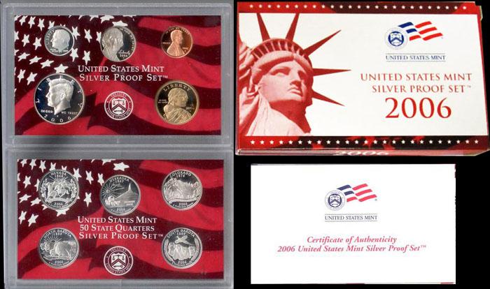 The Set contains 5 90% Silver Proof State Quarters, a 90% Silver Proof Half Dollar, a 90% Silver Proof Dime, as well as 3 additional Proof coins Including the Sacagawea Proof Dollar coin. Complete with Original Packaging and COA. Note* The set contains about 1 1/2 Ounces of Pure Silver. Estimated Value $50
