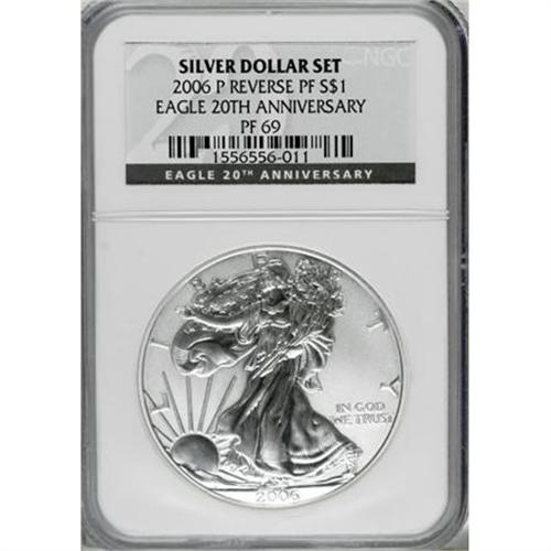 <B>2006 $1 20th Anniversary Silver Eagle set NGC. </B></I>The set includes a 2006-W MS69, 2006-P Reverse Proof PR69 and a 2006-W PR69 Deep Cameo.<BR><BR><b>Shipping:</b> Coins & Currency (<a target="_blank" href="http://www.heritageauctions.com/common/shipping.php">view shipping information</a>)