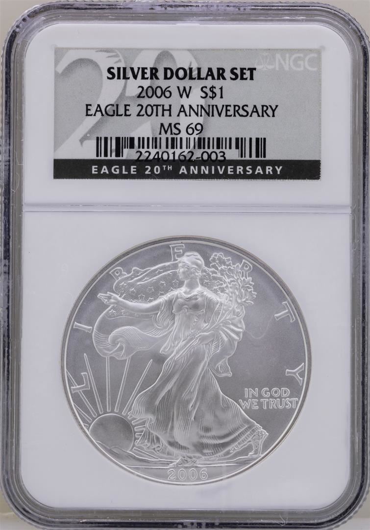One 2006-W $1 American Silver Eagle Coin NGC MS69. NGC Certified.