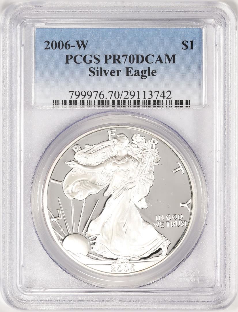 One 2006-W $1 Proof American Silver Eagle Coin PCGS PR70DCAM. PCGS Graded.