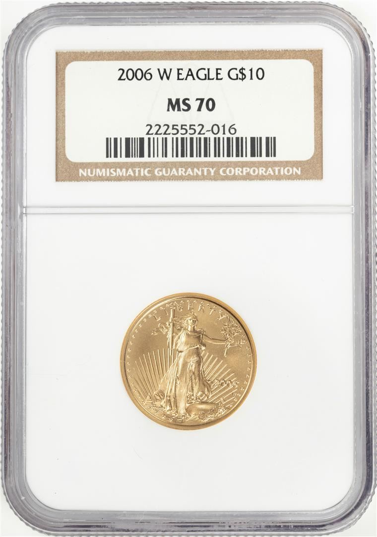 One 2006-W $10 American Gold Eagle Coin NGC MS70. NGC Certified.