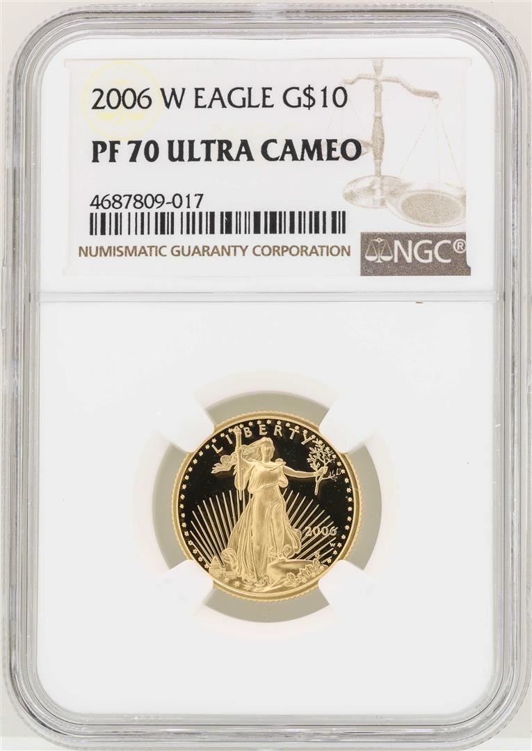 One 2006-W $10 American Gold Eagle Coin NGC PF70 Ultra Cameo. NGC Certified.