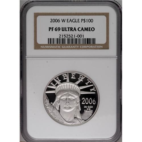 <B>2006-W $100 One-Ounce PR69 Deep Cameo NGC.</B></I> NGC Census: (0/0). PCGS Population (336/25). Numismedia Wsl. Price: $1,375. (#921119)<BR><BR><b>Shipping:</b> Coins & Currency (<a target="_blank" href="http://www.heritageauctions.com/common/shipping.php">view shipping information</a>)