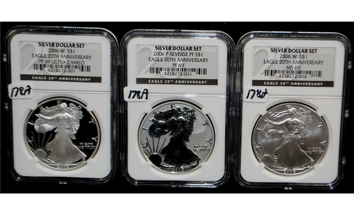 2006 - 20TH ANNIVERSARY SILVER EAGLE 3-COIN SET - NGC PR 69 ULTRA CAMEO