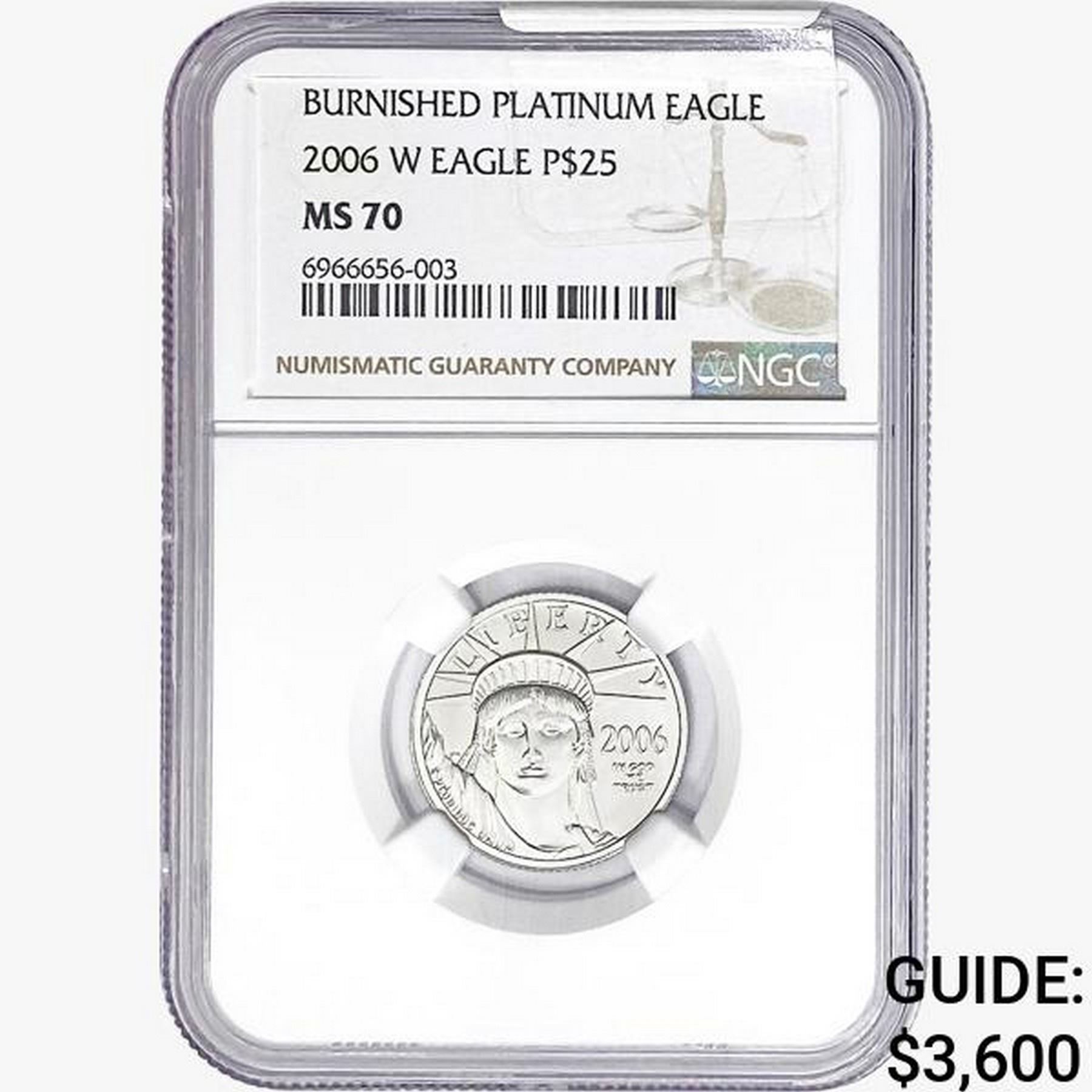 2006-W $25 1/4oz Burnished Platinum Eagle NGC MS70