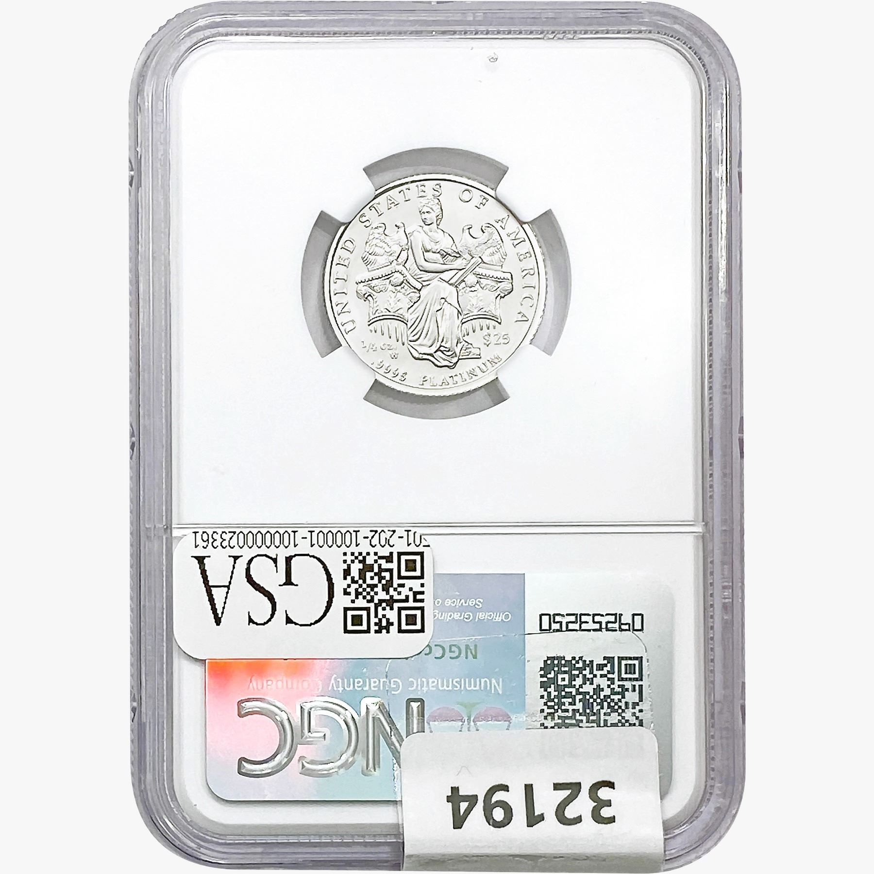 e. Coins sold referencing a third-party grading service are sold “AS IS” without any express or implied warranty, except for a guarantee by GSA that they are genuine. Removal or alteration of the holder, voids all of Bidder’s claims concerning that Product. Certain warranties may be available from the grading services and Bidders are referred to them for further details: Numismatic Guaranty Corporation (NGC), PO Box 4776, Sarasota, FL 34230, www.ngccoin.com/services/writtenguarantee.asp; Professional Coin Grading Services (PCGS), PO Box 9458, Newport Beach, CA 92658, www.pcgs.com/guarantee.html; ANACS, 6555 S. Kenton St., Ste. 303, Englewood, CO 80111; and Independent Coin Grading Co. (ICG), 7901 East Bellview, Ave., Suite 50, Englewood, CO 80111.
