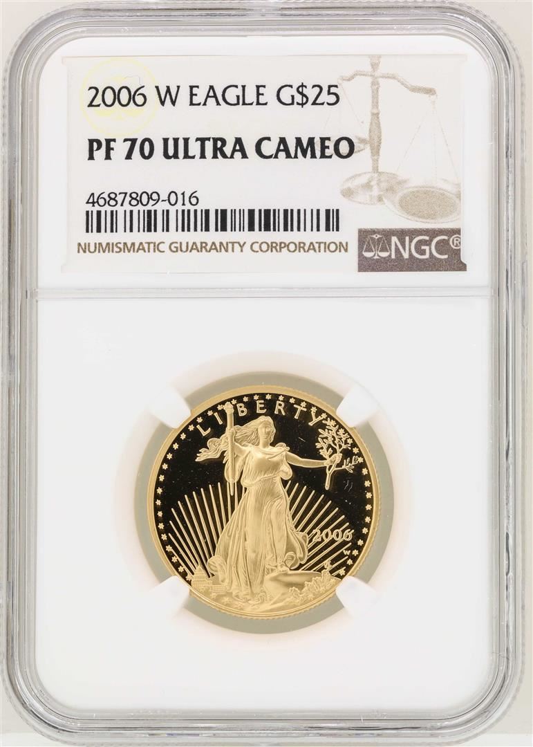One 2006-W $25 American Gold Eagle Coin NGC PF70 Ultra Cameo. NGC Certified.