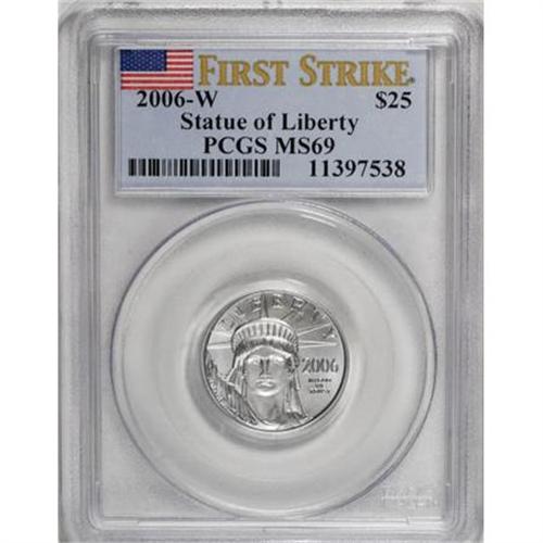 <B>2006-W $25 Quarter Ounce Platinum Statue of Liberty First Strike MS69 PCGS.</B></I><BR><BR><b>Shipping:</b> Coins & Currency (<a target="_blank" href="http://www.heritageauctions.com/common/shipping.php">view shipping information</a>)
