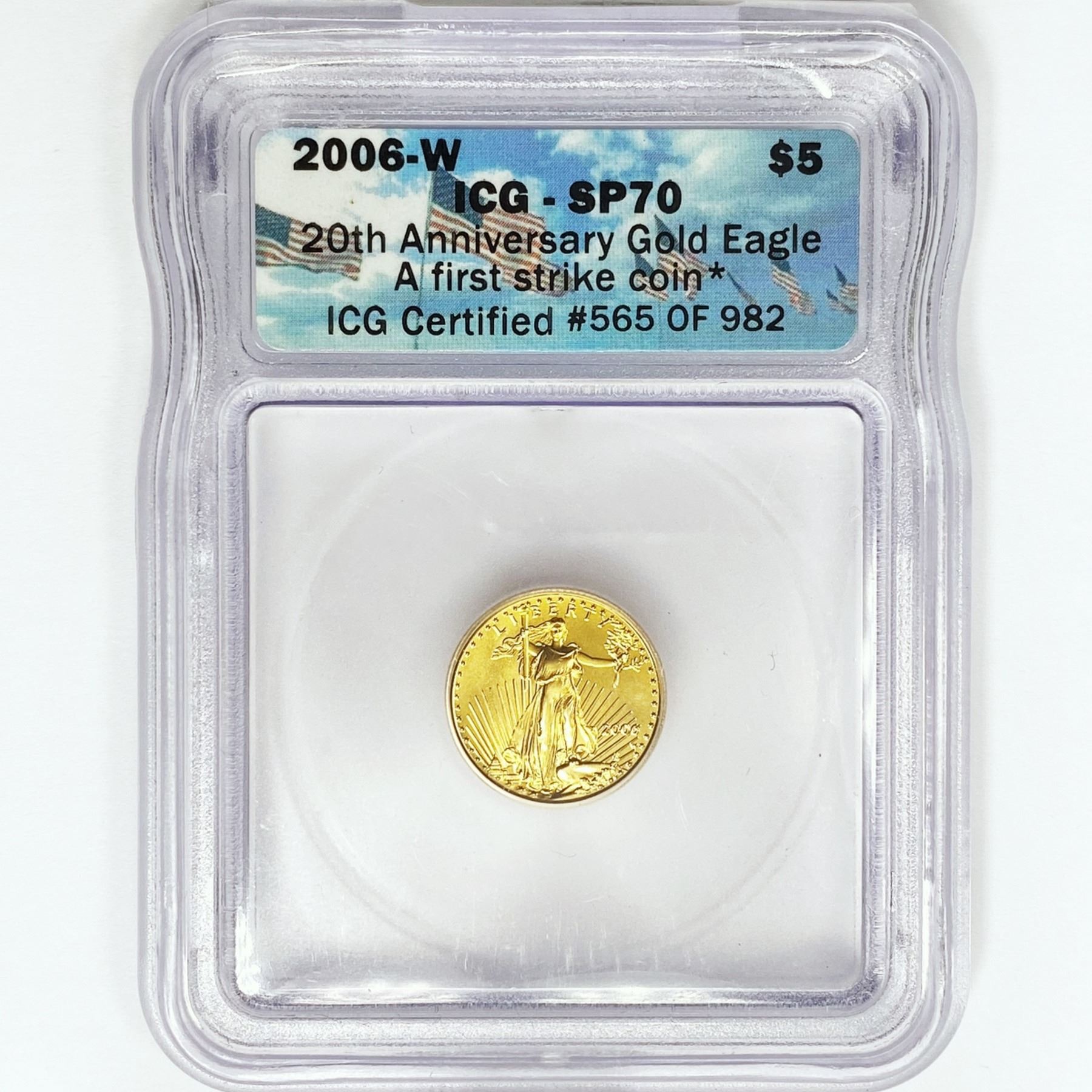2006-W $5 1/10oz AGE ICG SP70 1st Strike, 20th Ann