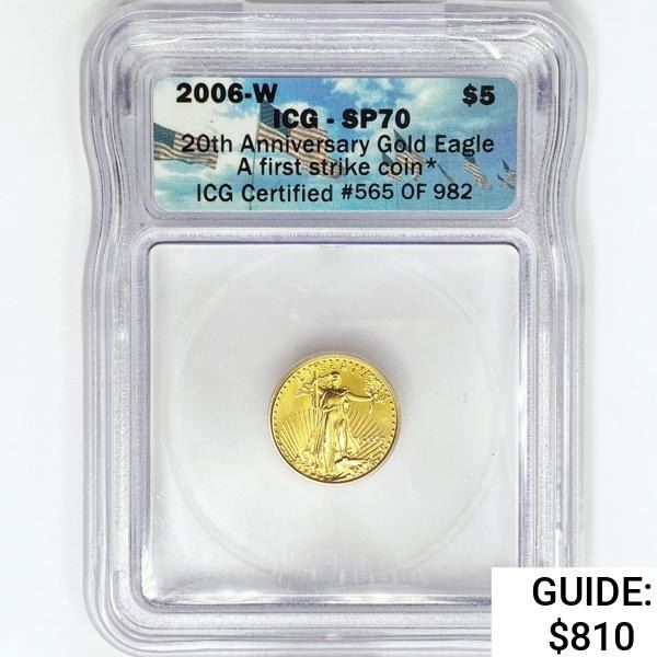 2006-W $5 1/10oz AGE ICG SP70 1st Strike, 20th Ann