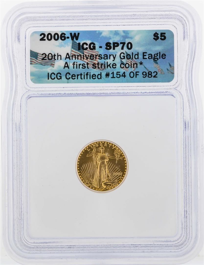 One 2006-W $5 American Gold Eagle Coin ICG SP70. ICG Certified.