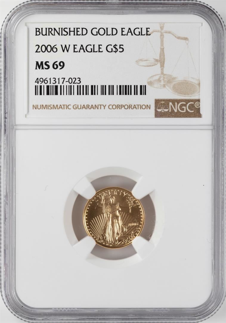 One 2006-W $5 Burnished American Gold Eagle Coin NGC MS69. NGC Certified.