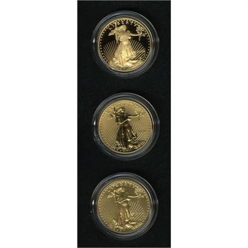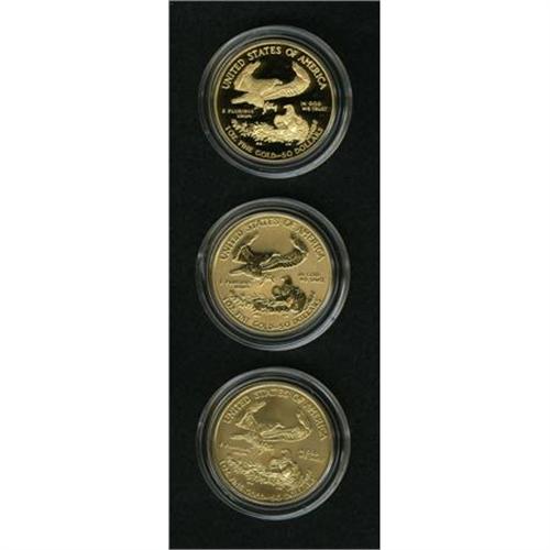 <B>2006-W $50 20th Anniversary American Gold Eagle Set.</B></I> The Uncertified set contains an Uncirculated finish, a proof, and a reverse proof one-ounce gold eagle. All three coins are in flawless condition, and are housed in the black case and gold box of Treasury issue, along with a certificate of authenticity.<BR><BR><b>Shipping:</b> Coins & Currency (<a target="_blank" href="http://www.heritageauctions.com/common/shipping.php">view shipping information</a>)