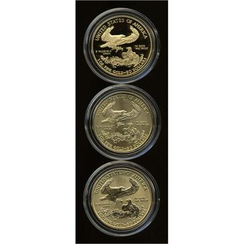 <B>2006-W American Eagle 20th Anniversary Gold Coin Set.</B></I> This scarce set contains the Uncirculated finish, regular proof, and reverse proof one-ounce gold eagles. The three coins are immaculate, Uncertified, and housed in the black case and gold box of mint issue. A certificate of authenticity is included.<BR><BR><b>Shipping:</b> Coins & Currency (<a target="_blank" href="http://www.heritageauctions.com/common/shipping.php">view shipping information</a>)