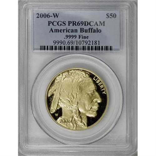<B>2006-W $50 Buffalo One-Ounce Gold PR69 Deep Cameo PCGS.</B></I> PCGS Population (5267/1422). NGC Census: (9408/9263). Numismedia Wsl. Price for NGC/PCGS coin in PR69: $770. (#9990)<BR><BR><b>Shipping:</b> Coins & Currency (<a target="_blank" href="http://www.heritageauctions.com/common/shipping.php">view shipping information</a>)