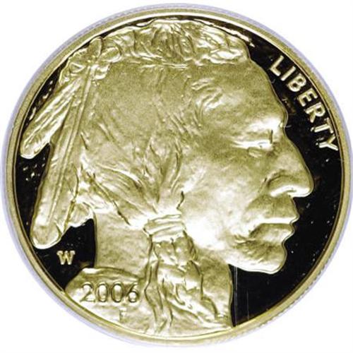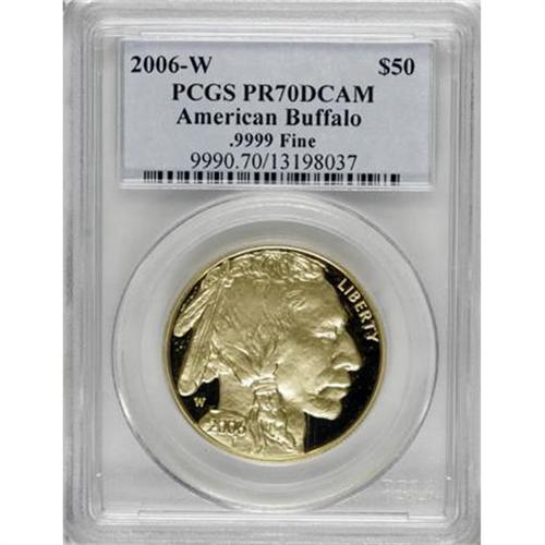 <B>2006-W $50 Buffalo One-Ounce Gold PR70 Deep Cameo PCGS.</B></I> PCGS Population (1515/0). NGC Census: (10758/0). Numismedia Wsl. Price for NGC/PCGS coin in PR70: $1,000. (#9990)<BR><BR><b>Shipping:</b> Coins & Currency (<a target="_blank" href="http://www.heritageauctions.com/common/shipping.php">view shipping information</a>)