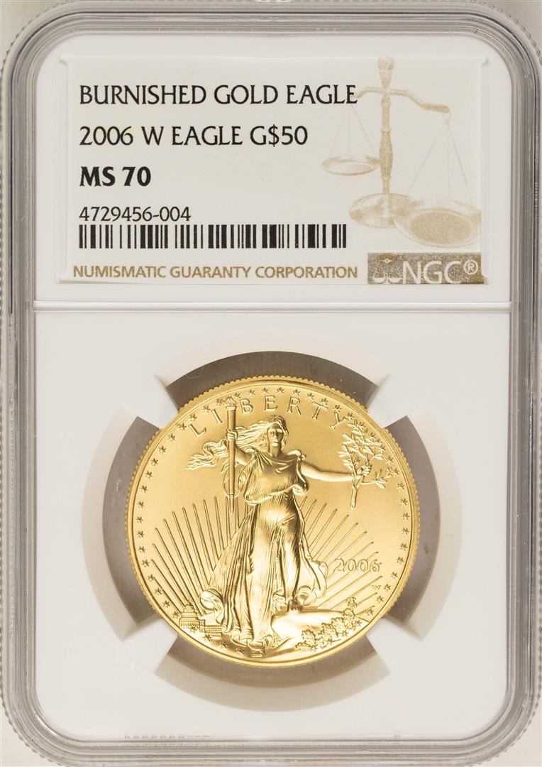 One 2006-W $50 Burnished American Gold Eagle Coin NGC MS70. NGC Certified.