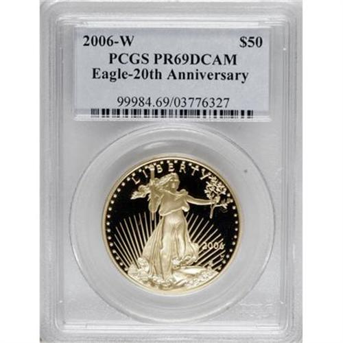 2006-W $50 One Ounce Eagle 20th Anniversary PR69 Deep