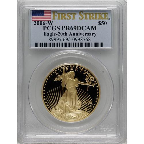 <B>2006-W $50 One-Ounce Gold 20th Anniversary PR69 Deep Cameo PCGS.</B></I> PCGS Population (0/0). NGC Census: (0/0). (#89997)<BR><BR><b>Shipping:</b> Coins & Currency (<a target="_blank" href="http://www.heritageauctions.com/common/shipping.php">view shipping information</a>)