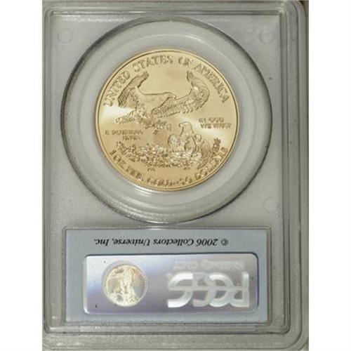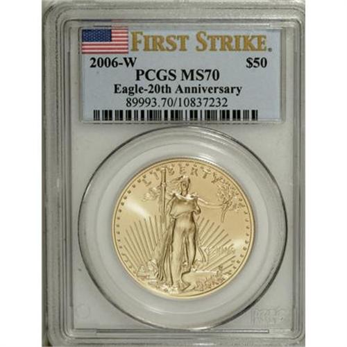 <B>2006-W $50 One-Ounce Gold MS70 PCGS.</B></I> 20th Anniversary Set and First Strike, per the PCGS insert. An immaculate and satiny example of this popular mintmarked issue.<BR><BR><b>Shipping:</b> Coins & Currency (<a target="_blank" href="http://www.heritageauctions.com/common/shipping.php">view shipping information</a>)