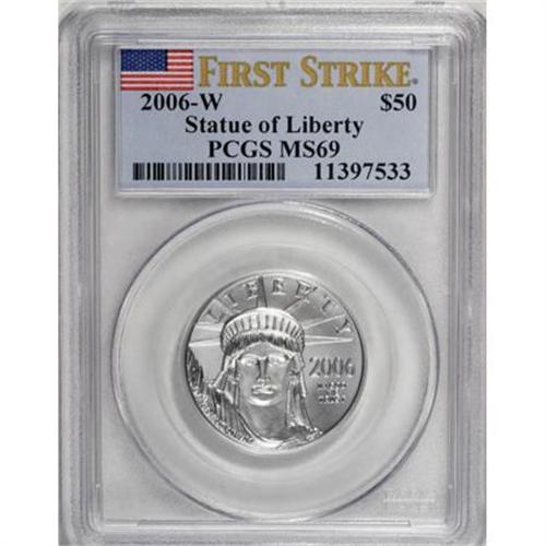 <B>2006-W $50 Half Ounce Platinum Statue of Liberty First Strike MS69 PCGS.</B></I><BR><BR><b>Shipping:</b> Coins & Currency (<a target="_blank" href="http://www.heritageauctions.com/common/shipping.php">view shipping information</a>)