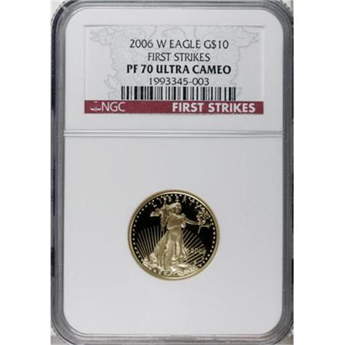 <B>2006-W G$10 Quarter Ounce Gold Eagle PR70 Deep Cameo NGC. </B></I>First Strikes. <BR><BR><b>Shipping:</b> Coins & Currency (<a target="_blank" href="http://www.heritageauctions.com/common/shipping.php">view shipping information</a>)