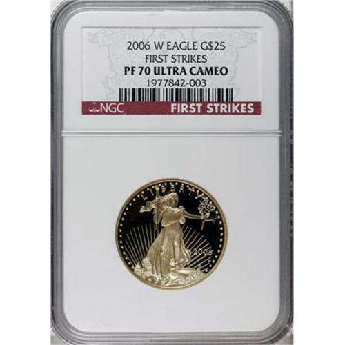 <B>2006-W $25 Half-Ounce Gold Eagle PR70 Deep Cameo NGC.</B></I> First Strikes. NGC Census: (0/0). PCGS Population (14/0). (#921113)<BR><BR><b>Shipping:</b> Coins & Currency (<a target="_blank" href="http://www.heritageauctions.com/common/shipping.php">view shipping information</a>)