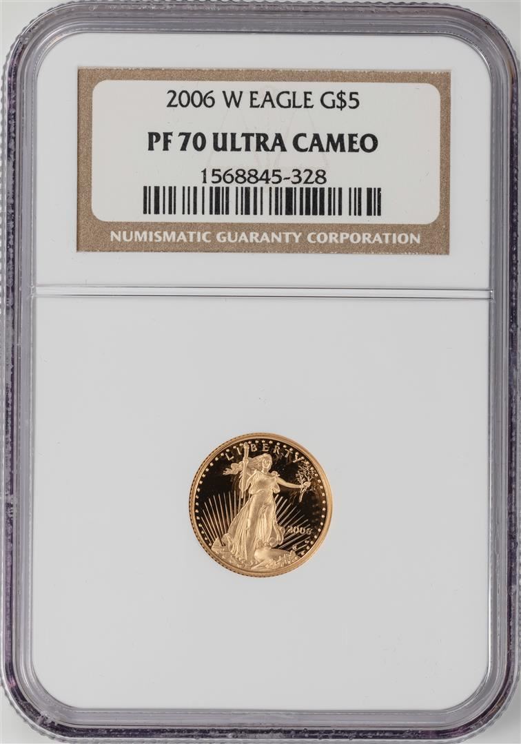 One 2006-W Proof $5 American Gold Eagle Coin NGC PF70 Ultra Cameo. NGC Certified.