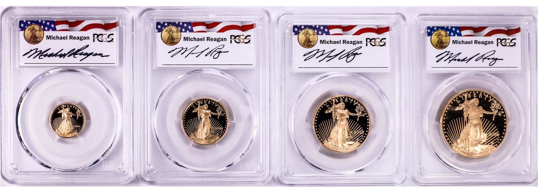One 2006-W Proof American Gold Eagle (4) Coin Set PCGS PR69DCAM Michael Reagan Signature. PCGS Graded.