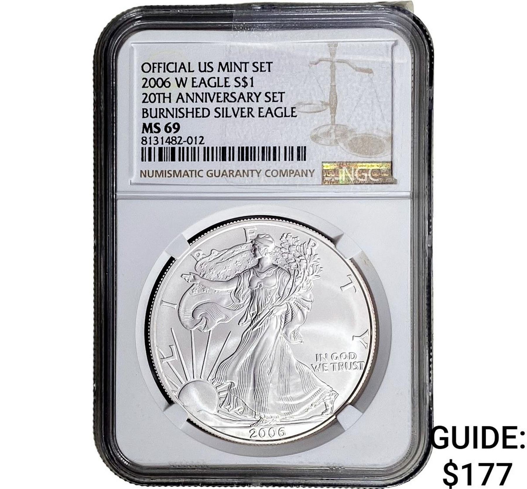 2006-W Silver Eagle NGC MS69 Burnished 20th Anniv