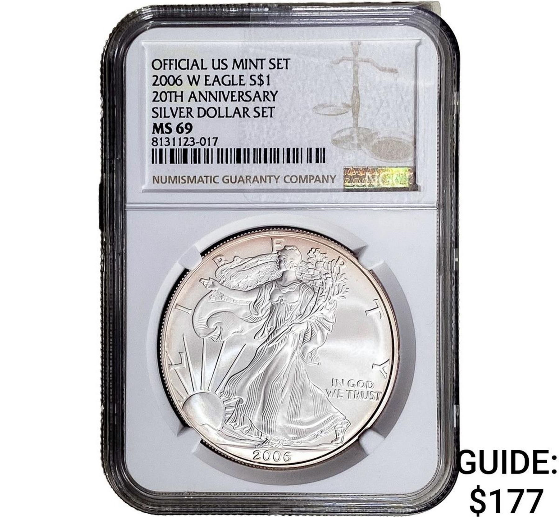 2006-W Silver Eagle NGC MS69 Burnished 20th Anniv.