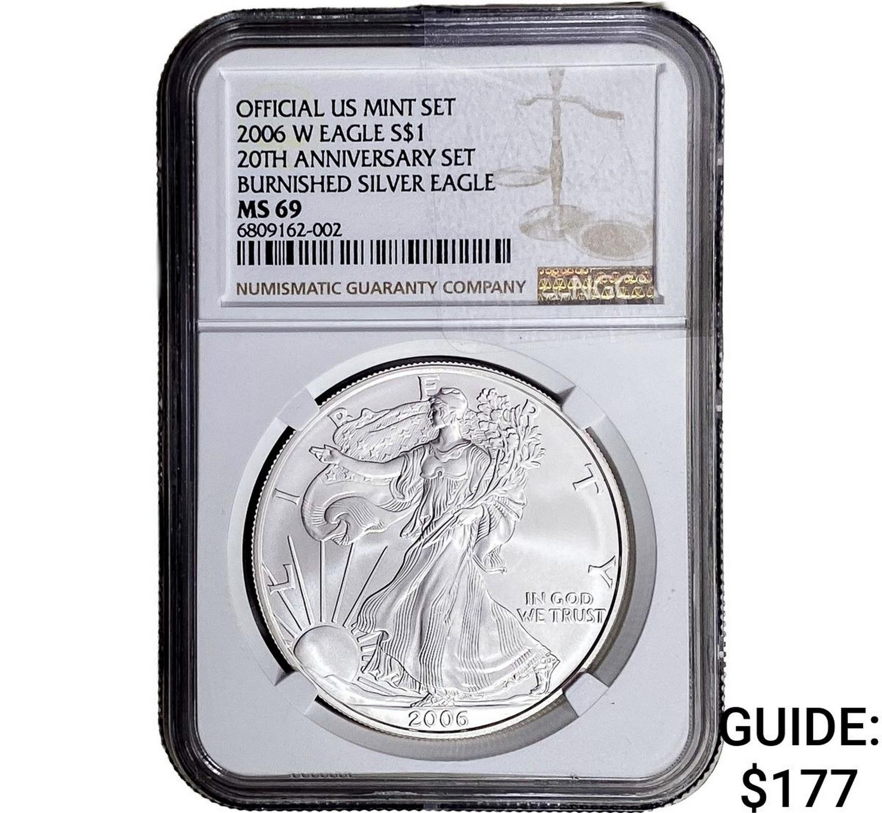 2006-W Silver Eagle NGC MS69 Burnished 20th Anniv.